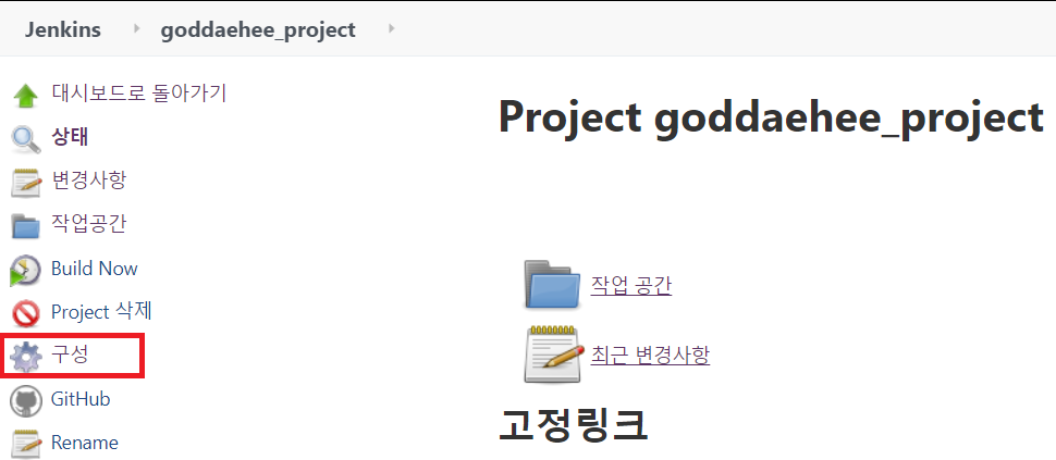 만들어 놓은 프로젝트로 이동 → 구성 클릭